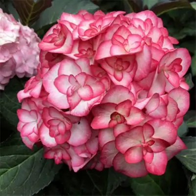 Гортензия крупнолистная Ю энд ми мисс саори описание которой часто фокусируется на уникальном строении лепестков, поражает своими зонтичными соцветиями диаметром до 30 см. Крупные круглые шапки состоят из многочисленных махровых цветов. Окраска лепестков матово-белая с эффектной ярко-розовой каймой по краям, что создает нежный, «фарфоровый» эффект. Важным преимуществом является то, что этот сорт не меняет свой цвет в зависимости от кислотности почвы, сохраняя стабильный окрас. Цветение начинается в июне и продолжается до сентября, причем бутоны закладываются как на побегах прошлого года, так и на молодых ветвях текущего сезона, обеспечивая обильное повторное цветение.