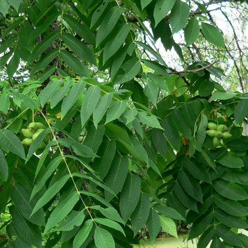 Листья маньчжурского ореха крупные, сложные и имеют характерную продолговато-эллиптическую форму. Их размеры варьируются от 6 до 17 см в длину и 2-7 см в ширину, а опушённая обратная сторона создаёт дополнительный эстетический эффект. В весенний период (апрель-май) на дереве появляются тычиночные цветки в длинных серёжках, которые, несмотря на свои небольшие размеры, привлекают внимание опылителей и способствуют формированию плодов.