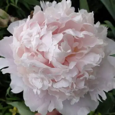 Крупные цветы диаметром до 19 см не оставляют равнодушным ни одного садовода. Их светло-розовая окраска с легким лососевым оттенком у основания и серебристые края лепестков придают цветку нежность и элегантность. Махровые, розовидные и шаровидные соцветия отлично смотрятся как в саду, так и в вазе, сохраняя свою свежесть на протяжении длительного времени. Полное отсутствие тычинок и пестиков делает цветы особенно пышными и чистыми по внешнему виду, а их приятный аромат наполняет сад благоуханием.