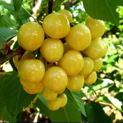 Саженцы черешни Приусадебная желтая порадуют вас высокой урожайностью – до 45 кг с дерева. Несмотря на свою самоплодность, наличие вишен или черешен других сортов рядом значительно увеличивает количество плодов, что обязательно оценят садоводы.
