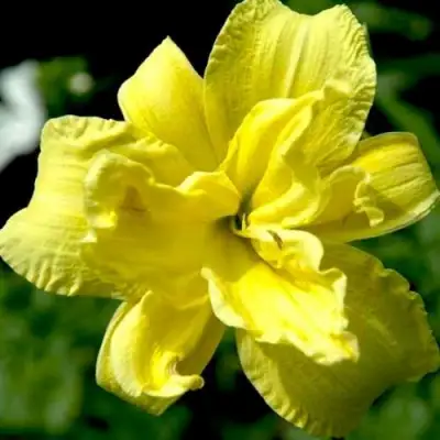 Цветки Дабл Ривер Вай отличаются уникальной махровой формой и крупными размерами, диаметром 11-13 см. Их основная окраска яркий желтый цвет, который роскошно сверкает на солнце. Этот сорт обладает чарующим ароматом, который дополняет его визуальную привлекательность. Интенсивность аромата средняя, что создает объемное и насыщенное восприятие растения.