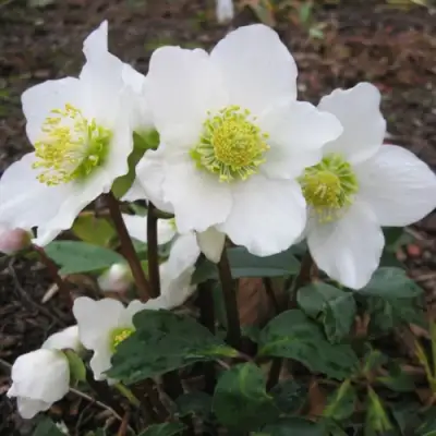 Главное преимущество — цветение. Уже в январе, а иногда — в декабре, над снежной коркой появляются первые бутоны. Белоснежные, до 8 см в диаметре, они располагаются одиночно на крепких цветоносах и слегка поникают — так растение защищает лепестки от влаги и ветра. Оттенок лепестков — чистый белый, с лёгким розовато-зелёным налётом к завершению цветения. Цветки сохраняются до марта–апреля, в зависимости от региона. Аромат тонкий, ненавязчивый, легко уловимый вблизи.