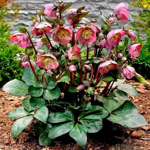 Цветки появляются с конца февраля — одного из самых неблагодарных месяцев в саду. Диаметр венчиков — до 8 см, окраска — кремово-зеленая с розовым оттенком. Бутоны слегка поникают, что защищает их от осадков и придаёт цветению особую камерность. Цветёт морозник до мая, а при стабильной погоде — и дольше.