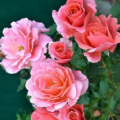 Роза плетистая Али Баба отличается яркой окраской цветка. Бутоны розовой окраски с медным оттенком открываются в оранжево-розовые цветы. Они обладают яркой насыщенностью цвета и крупным размером, с диаметром от 8 до 10 см. Цветков на одном стебле обычно насчитывается от 3 до 5, а количество лепестков в одном цветке составляет 20-30. Тип цветка умеренно махровый, а форма его чашевидная.