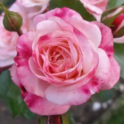 Цветение этой розы начинается в июне и продолжается до сентября, радуя глаз садоводов обильными и продолжительными цветами. Основная окраска бутона — ярко-бордово-красный с кремовыми полосками, что изначально создает впечатление неповторимости. В процессе распускания цветков можно наблюдать, как белые лепестки с красным краем постепенно обрастают красными штрихами и розовыми потеками, превращая каждый цветок в настоящий шедевр природы.